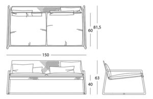 | Misure: | L 150 cm x P 81.5 cm x h 63 cm |