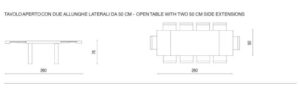 Tavolo allungabile con struttura, piano ed allunghe in laminato effetto legno. Due allunghe laterali da 50 cm.